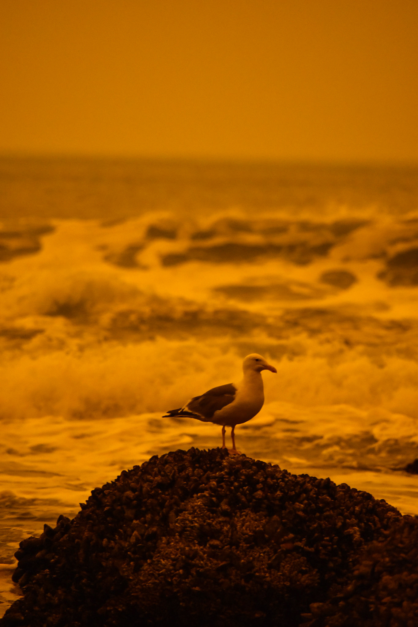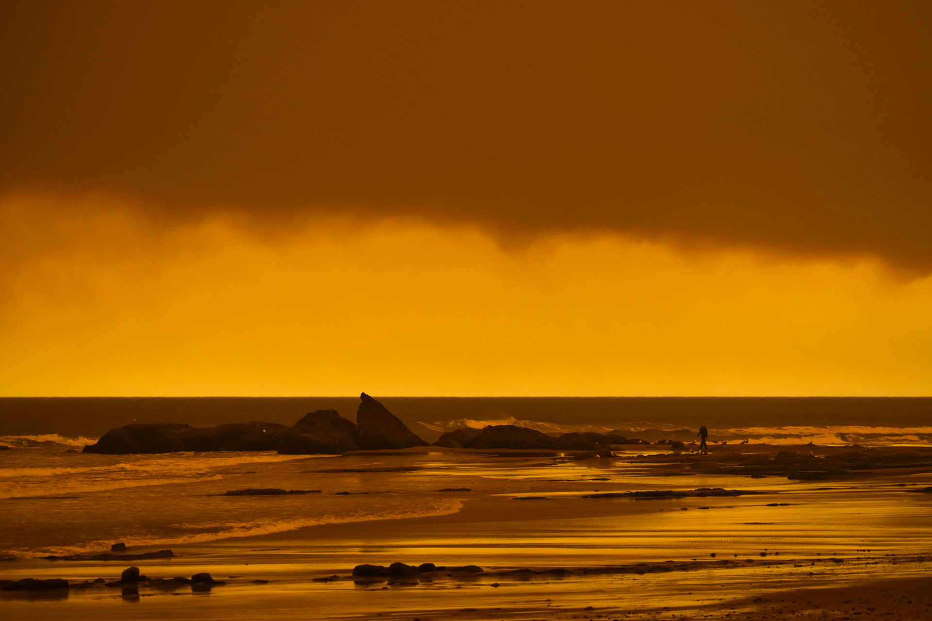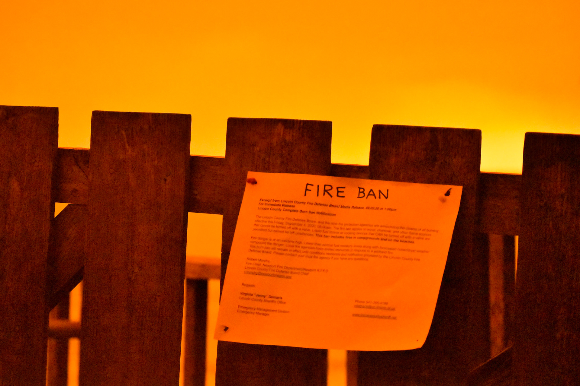 The coast of Oregon, USA during a wildfire in which the wind quickly spread the flames and ash, affecting all surrounding regions